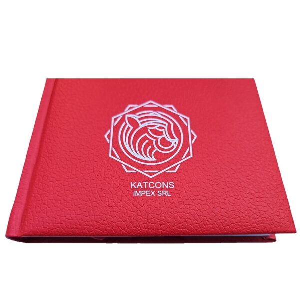 Modalitate de personalizare: timbru sec, gravura laser, print UV sau insertie de 2-4 pagini la interior.