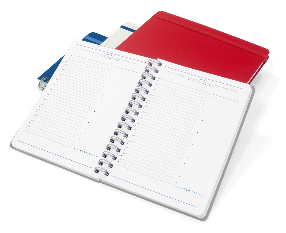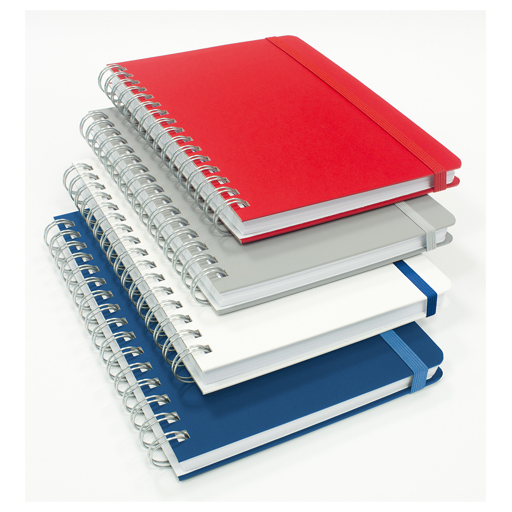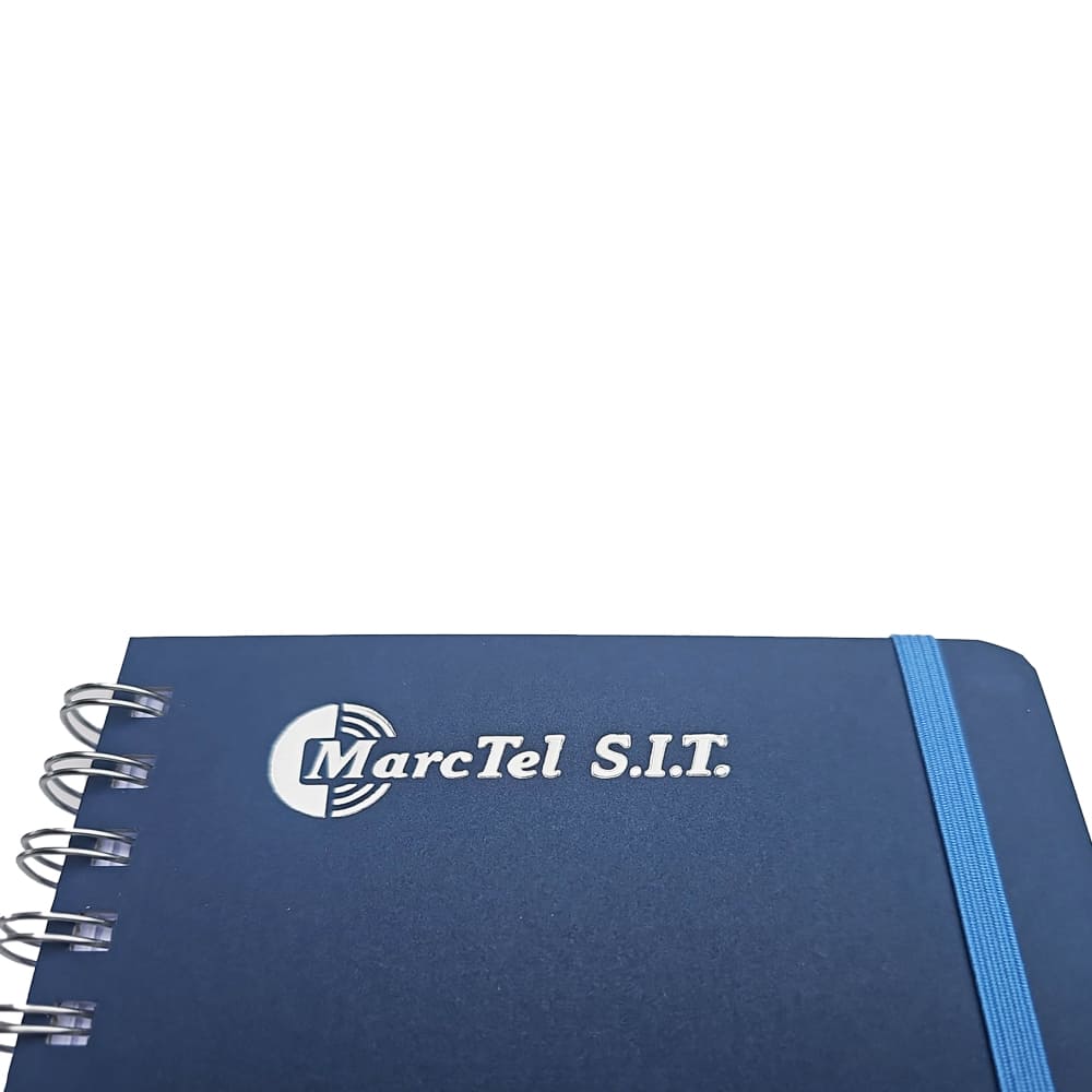 Finisare: spira metalica argintie • colţuri rotunjite bloc si coperta • elastic asortat in ton sau in contra ton cu coperta