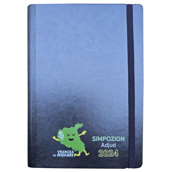Finisare: • spira metalica neagra • coperta speciala tip poliuretan (PU) • elastic asortat cromatic in cu ton cu coperta