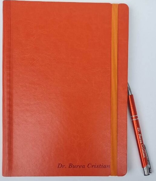 Modalitate de personalizare: timbru sec, gravura laer, print UV sau insertie de 2-4 pagini la interior.