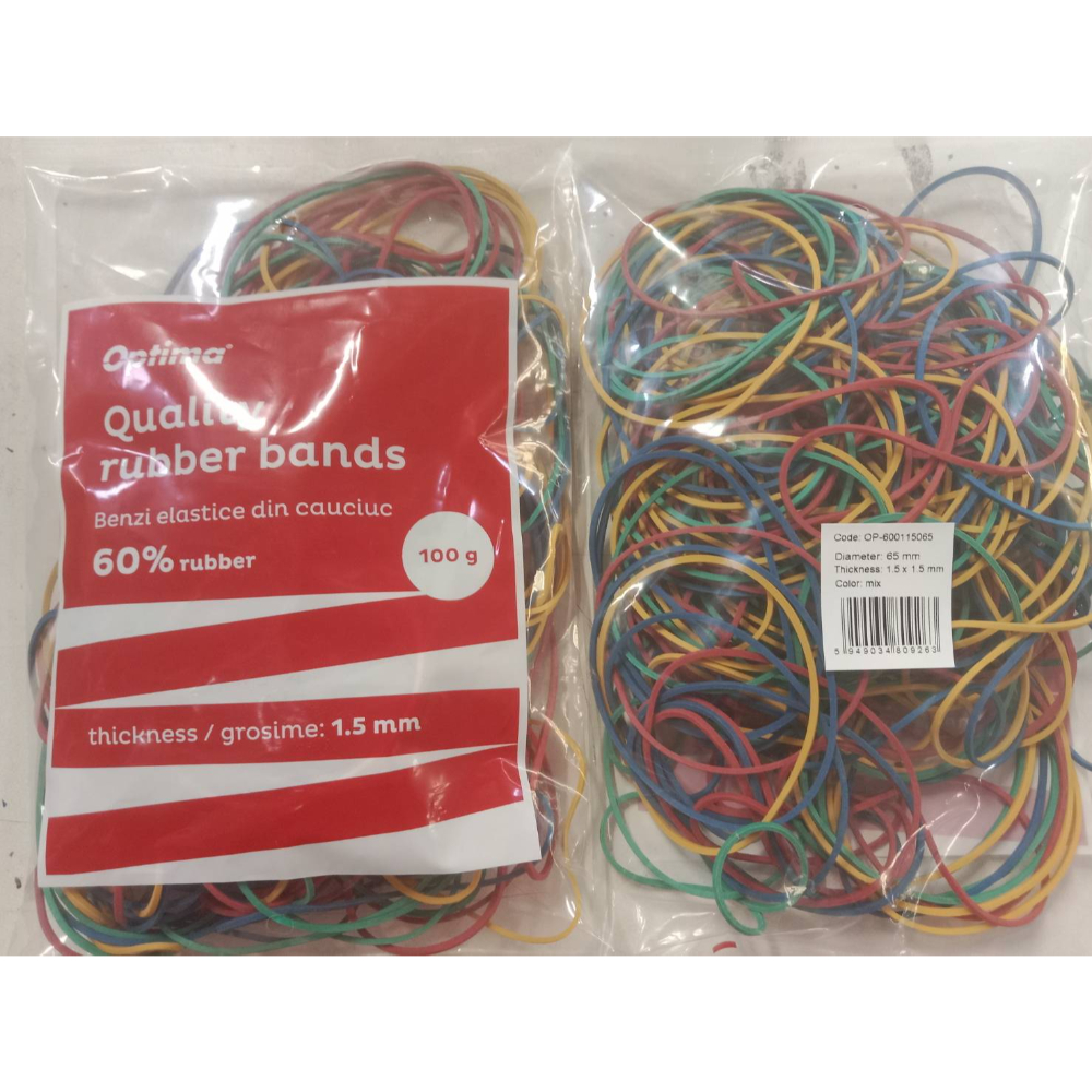 Elastice pentru bani, 60% cauciuc, 100gr./punga, grosime 1.5mm x 1.5mm, Optima