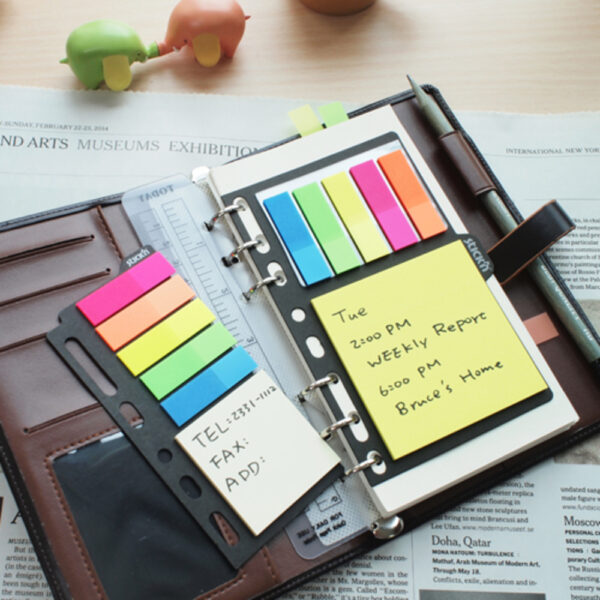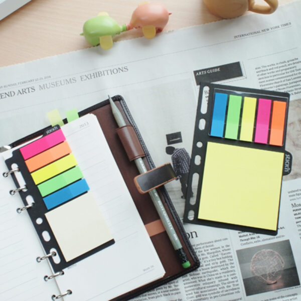 Ambalate intr-un dispenser care contine notes autoadeziv de hartie si index de plastic.