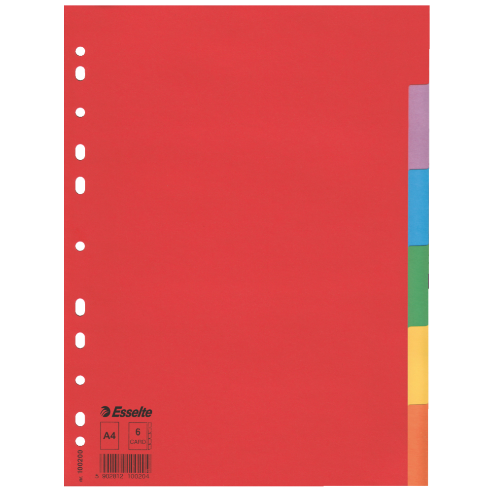 Descopera o experienta de cumparaturi simpla si eficienta in magazinul online de birotica si papetarie Absolut Office! De la articole esentiale pentru birou pana la produse de papetarie creative, gama noastra variata iti ofera tot ce ai nevoie. Comanda acum Separatoare Carton 6 Culori A4 Economy Esselte si beneficiaza de calitate superioara, preturi competitive si livrare rapida la usa ta.
